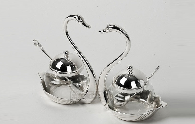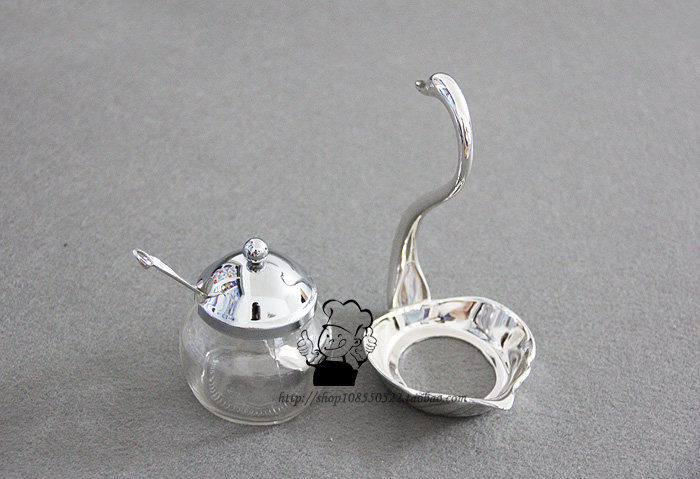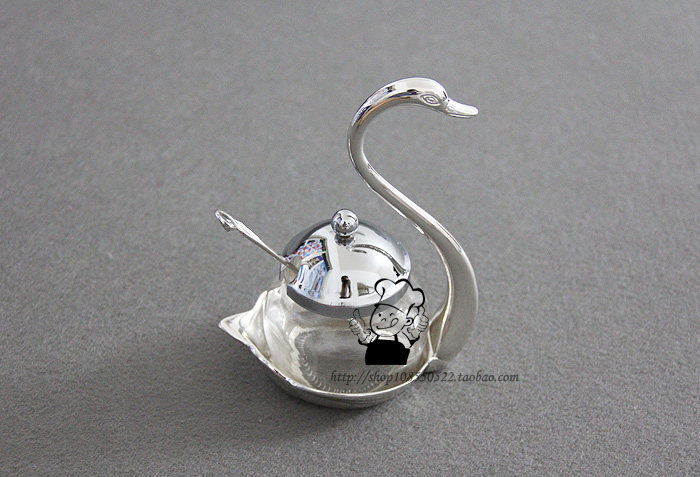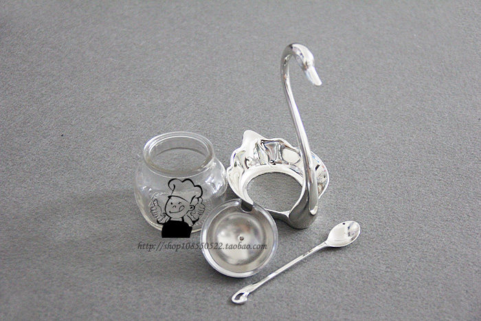【品名】:外贸出口天鹅糖罐--实物拍摄【材料】:锌合金(镀银)+玻璃【规格】:15.5cm x 12cm x 8cm 勺长12cm 玻璃罐体:5.5cm x 5.5cm【重量】:340g【产地】:国内出口产品--精美做工,适用于酒吧,咖啡厅.西餐厅