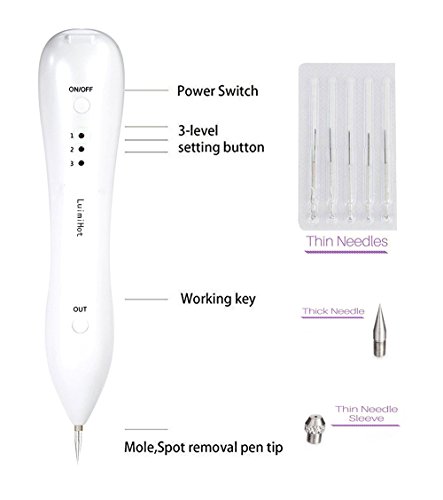 -. Feature : High-tech Microcomputer Control, Unique electronic ion technology. New materials employed ensures the users to feel no side effects resulted from cosmetic surgeries / Electronic ion carbonation function: instant sweep freckles, senile plaques, flat moles, dot moles, granulation, tattoos. Safely , fast without bleeding, no side effects. / High-grade and Exquisite, convenient to carry, USB charging one-time-charge enables it to work over 5 hours.The best gift for your relatives or friends. / Mole Removal Beauty Device: 3 kinds of adjustable modes and 6 needles to do different treatment, smart and reliable. / 100% money back if you not satisfied our item, place your order without any worry. We all shipped by FBA, fast and steady.