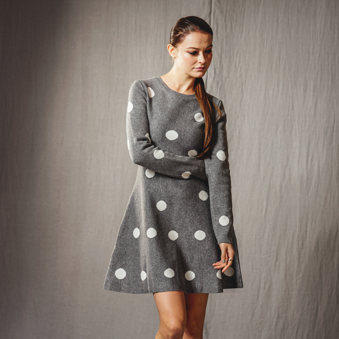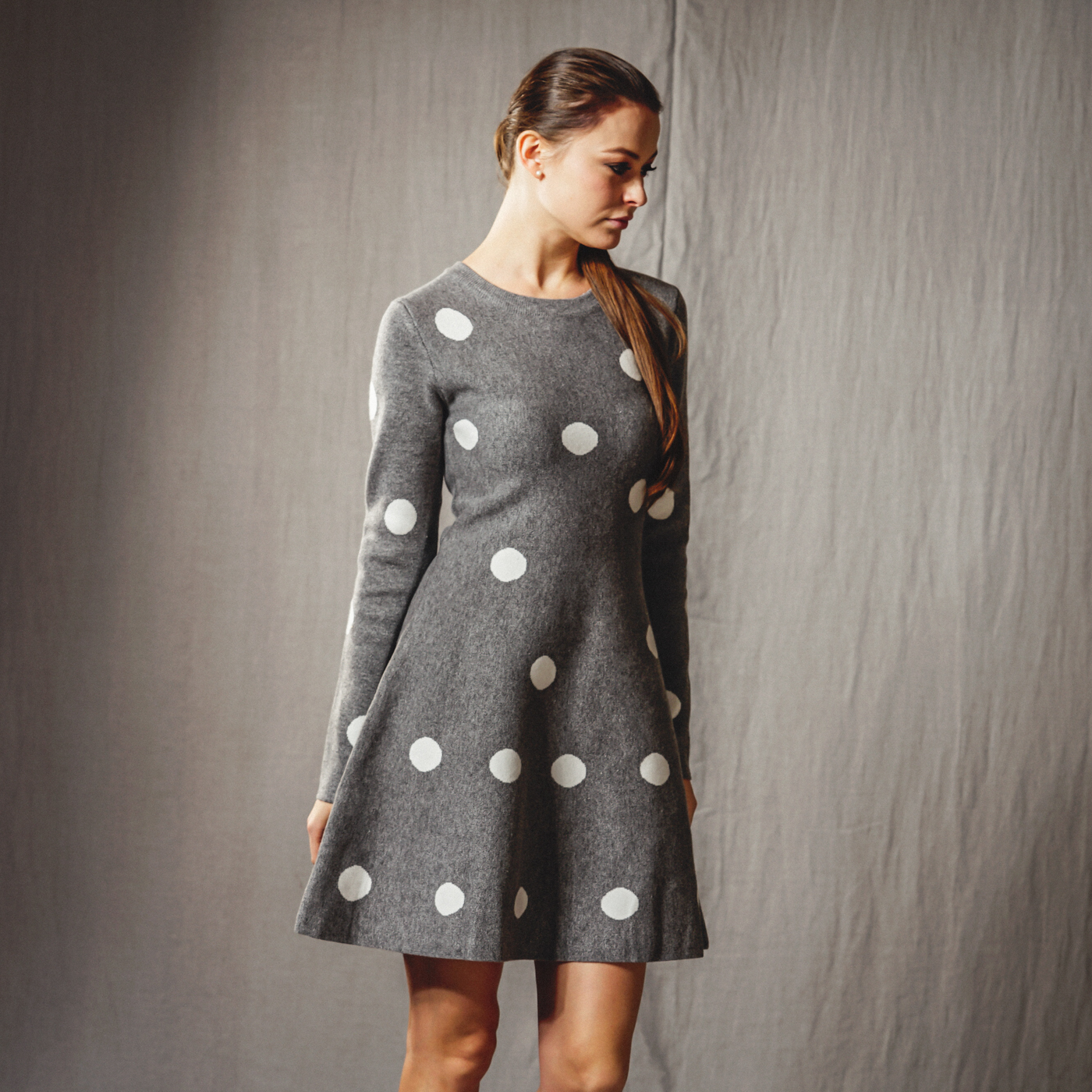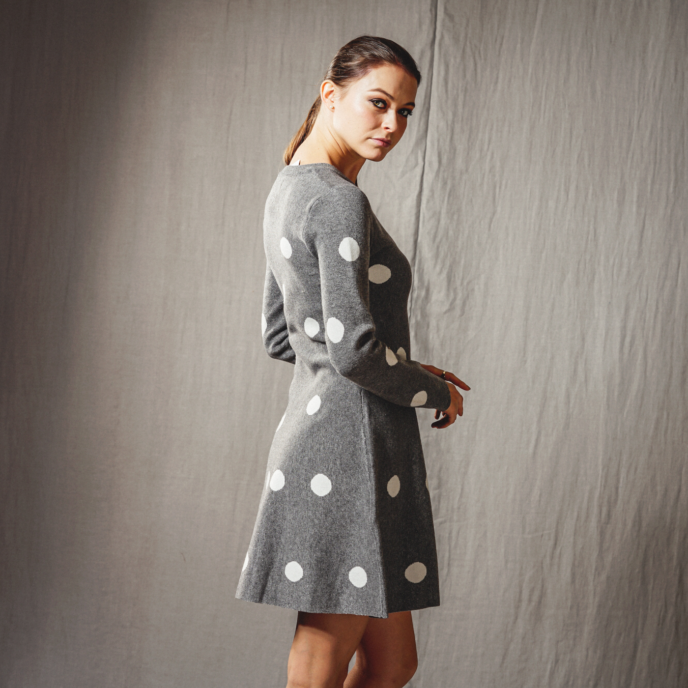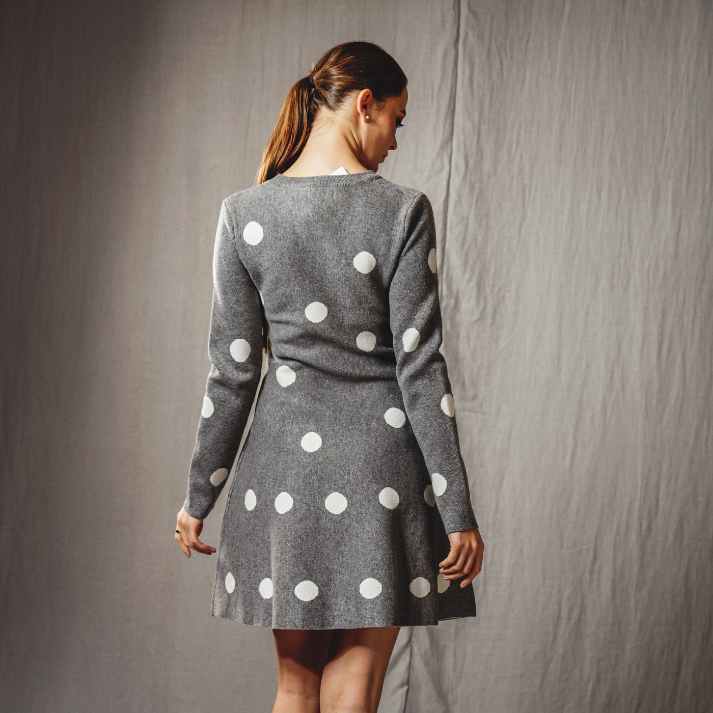 동글동글 패턴의 프리티한 니트 원피스로 모든 아우터에 코디하기 좋습니다.
