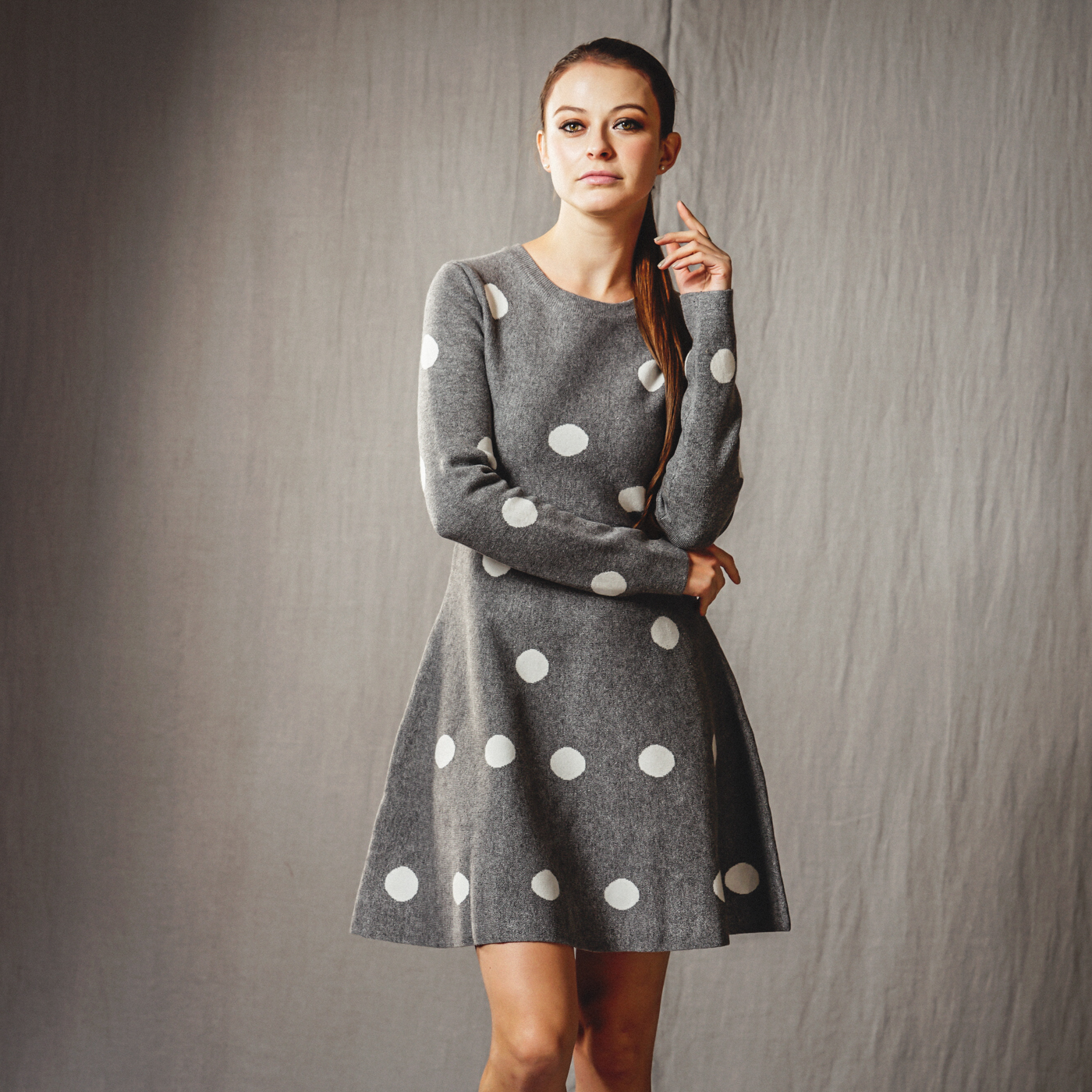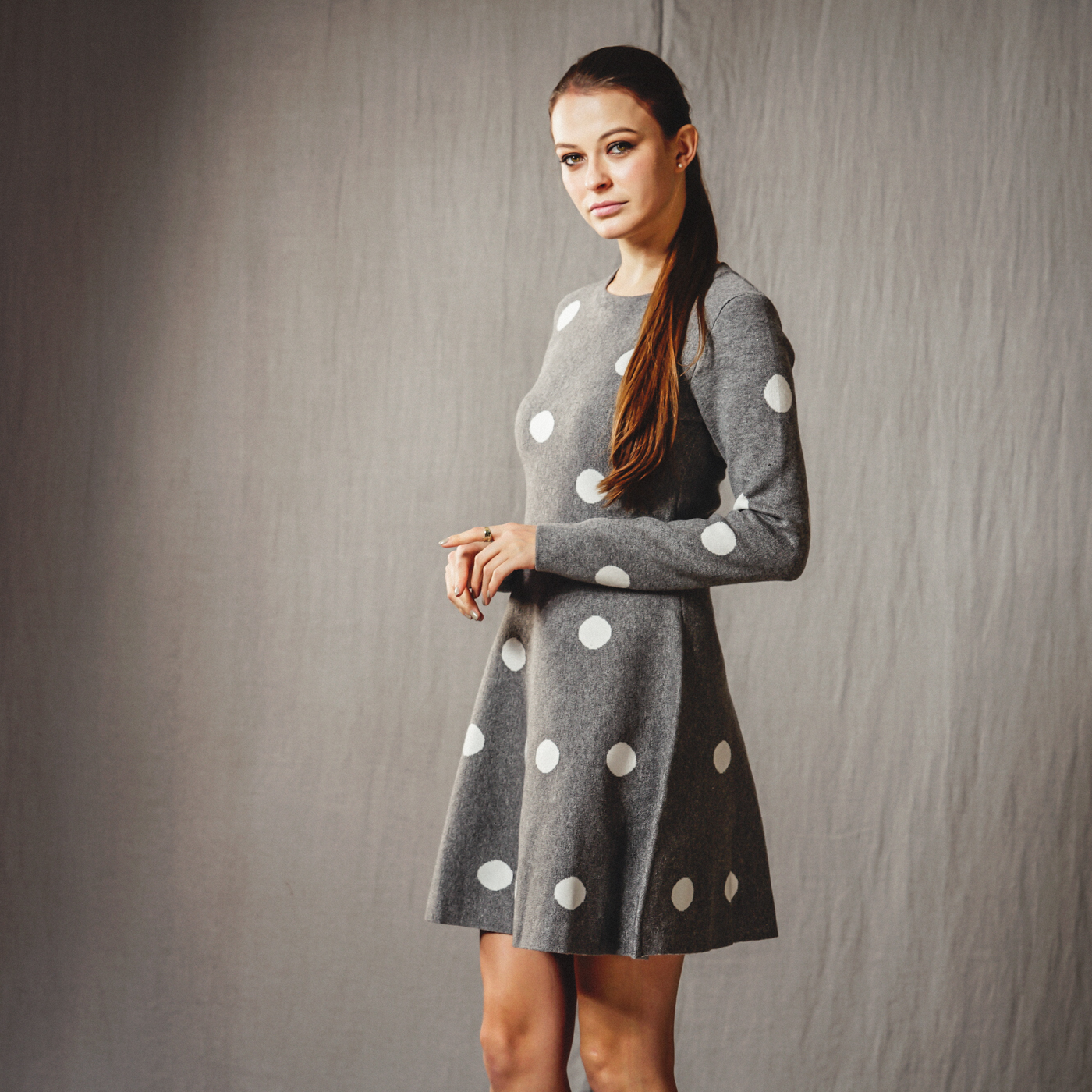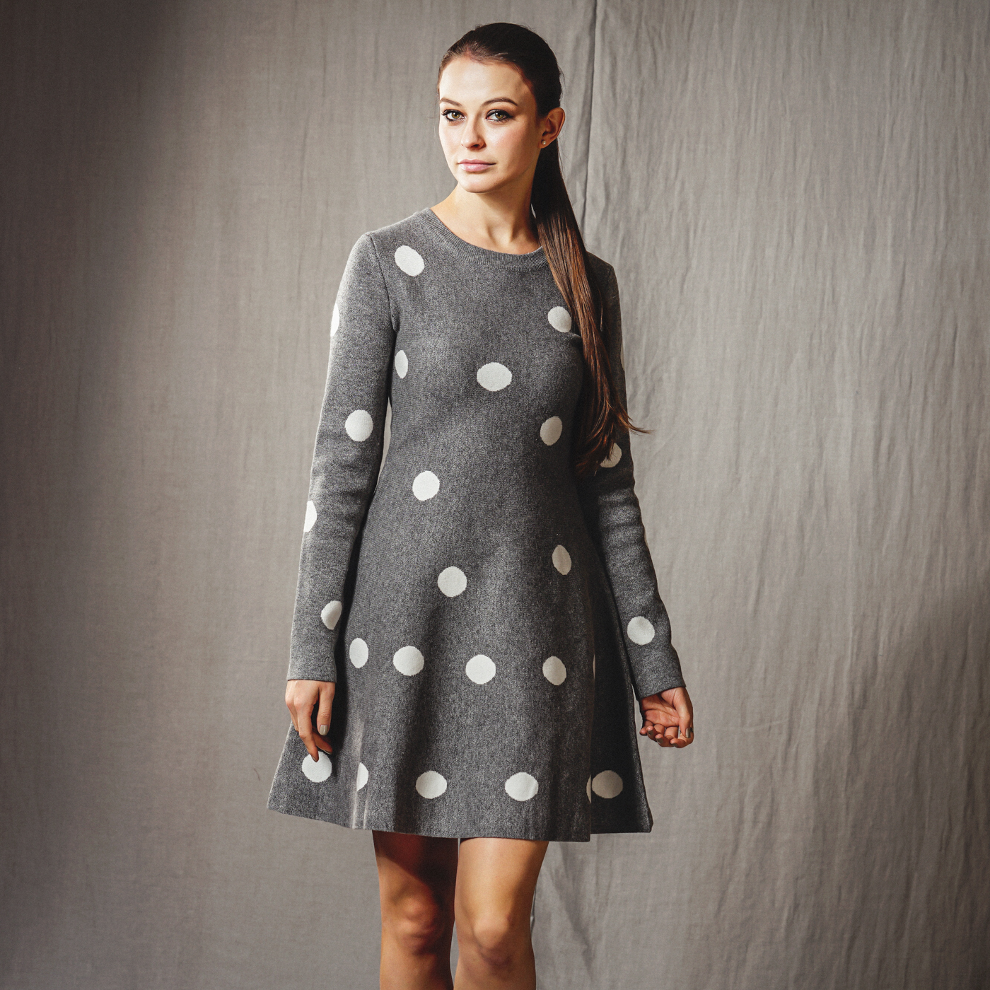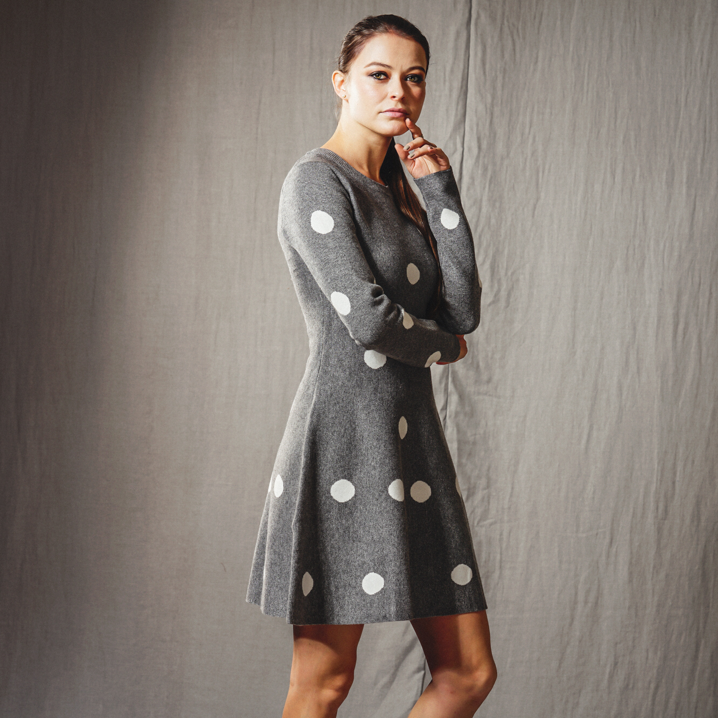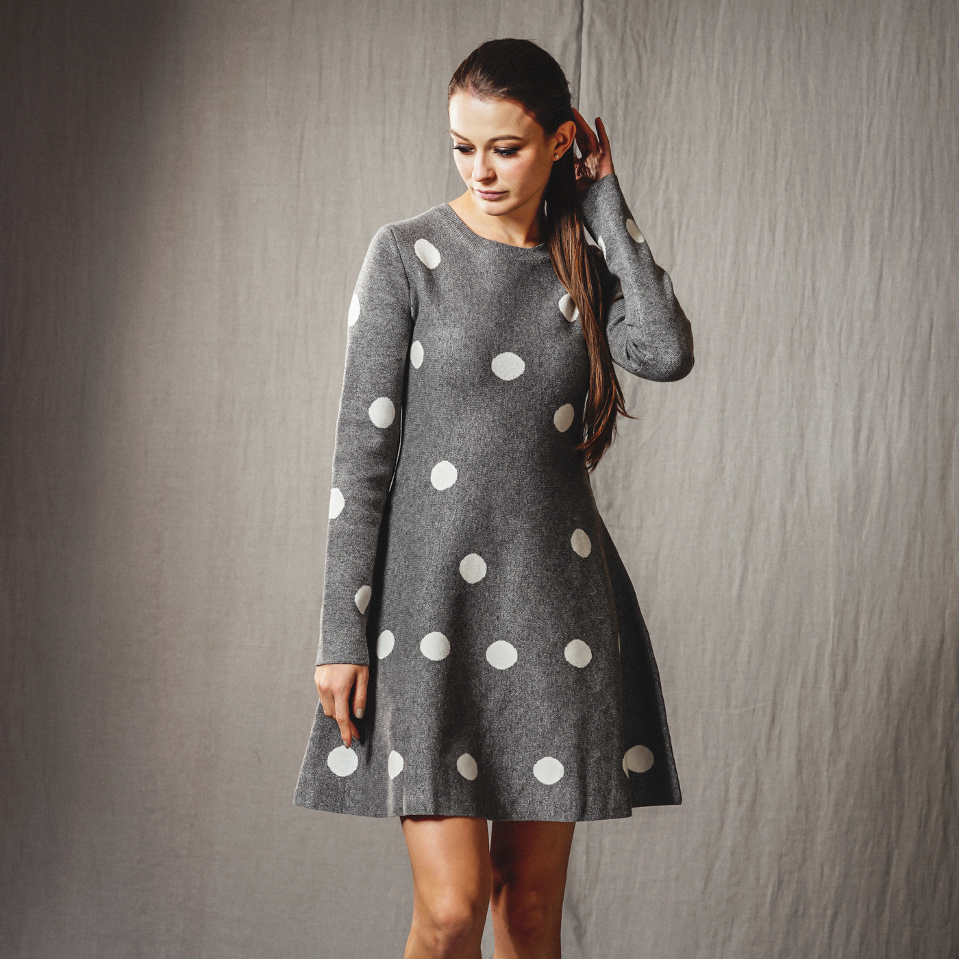 동글동글 패턴의 프리티한 니트 원피스로 모든 아우터에 코디하기 좋습니다.