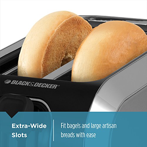 Extra-Wide Slots - Toast bagels and thick artisan bread easily. The extra-wide toasting slots allow for a wide variety of breads, with self-centering guides that adjust to any thickness
