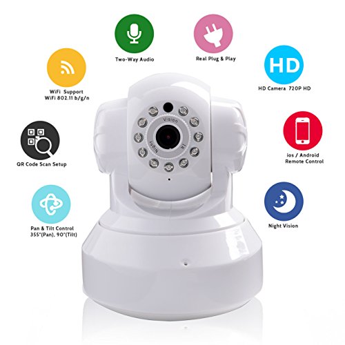 Live Video: 1.0 megapixel 720P HD, H.264 High Compression for fluent video performance, Wide monitoring angle: Angle rotation: 355°(Pan), 90°(Tilt), wireless app remote control