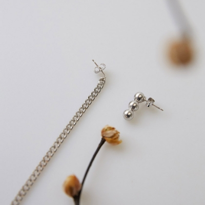 체인 형태의 라인 이어링과 미니 사이즈의 입체 서클 이어링이 세트로 구성된 아이템으로 양쪽이 다른 매력으로 연출되어 포인트로 착용하기 좋은 아이템입니다. 매트한 질감이 세련되어 보입니다.