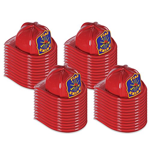 Beistle 66777-U27 48 Piece Plastic Fire Chief Hats with Medium Head Size, Red