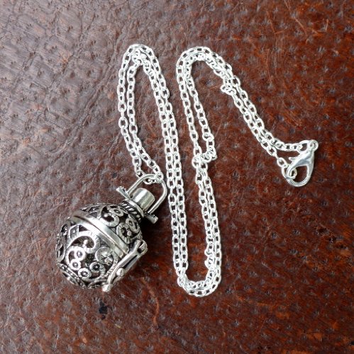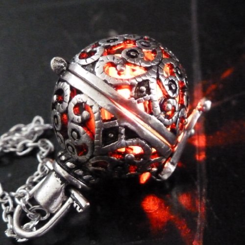 -. Title : Steampunk FIRE necklace - pendant charm locket jewelry- GREAT GIFT-silver Red
