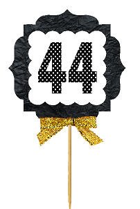 44th Birthday / Anniversary Gold Ribbon Hand Crafted Novelty Cupcake Decoration Toppers / Picks -12ct