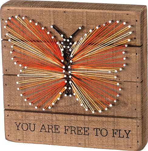 Primitives by Kathy String Art Wood Box Sign You Are Free To Fly 8" Square