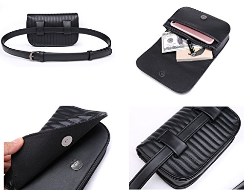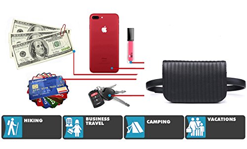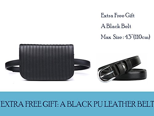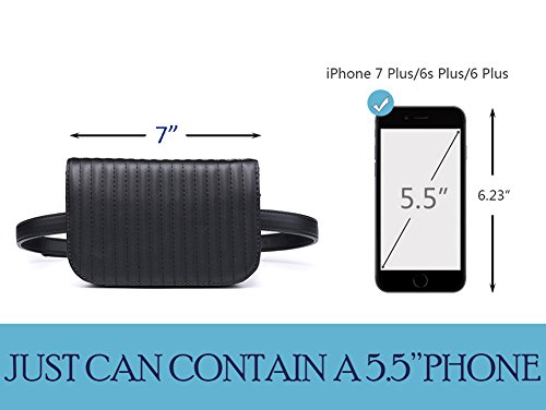 -. Feature : Fashionable - Much classier than regular fanny packs, Free up your hands meanwhile making you more stylish / Convenient - Perfect for your iPhone, house key, lipgloss, ID, passport, some cash and a couple of credit cards / Bag dimensions: W-6.7"(17cm), H-4.7"(12cm), D-1.77"(4.5cm), Could fit your iPhone 6s Plus; Belt size: adjustable to fit up to size 37"; Removable belt,we also give you a extra free gift black belt max size 43"/110cm / Pair well with jeans, casual pants, dresses, and leggings, designed for all year round, including autumn and winter / Package Includes: 1 X Fanny Pack, 2 X Belt (1 the same color to bag, 1 extra black belt )