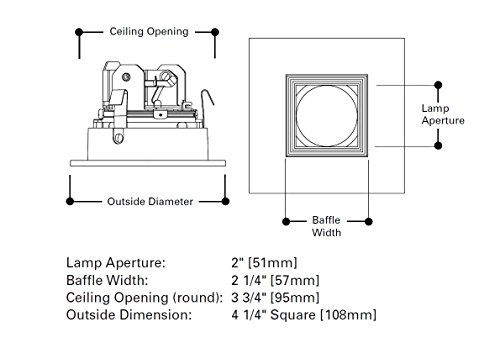 - Lamp Aperture: 2"; Baffle Width: 2.25"