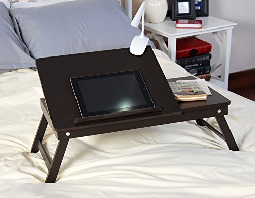 -. Title : Espresso Wooden Lap Desk, Flip Top with Drawer, Foldable Legs for Laptop