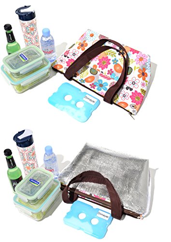 1.What you will get: 1LUNCH BAG&1 ICE PACK.Perfect ice pack (7"x5") for everyday use.The included reusable ice pack fits perfectly to keep your healthy meals cool and fresh for hours.Lunch box measures 17" x 10" x 5" hight,which allows you to put your food containers, water bottles, snacks .