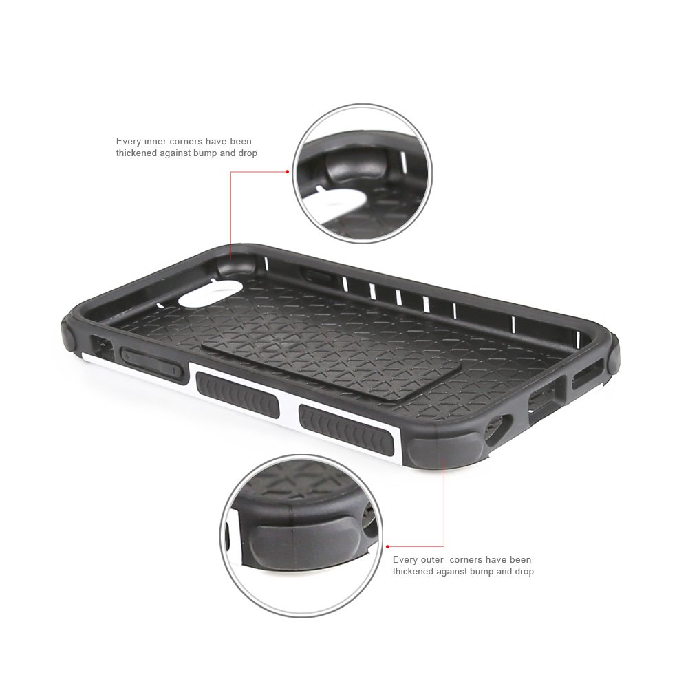Flexible TPU inside shock absorption, hard PC Outer support rugged and durable.The hotter corners of all the inner and outer secures against bumps and drops, the rough double side provides amazing grip.