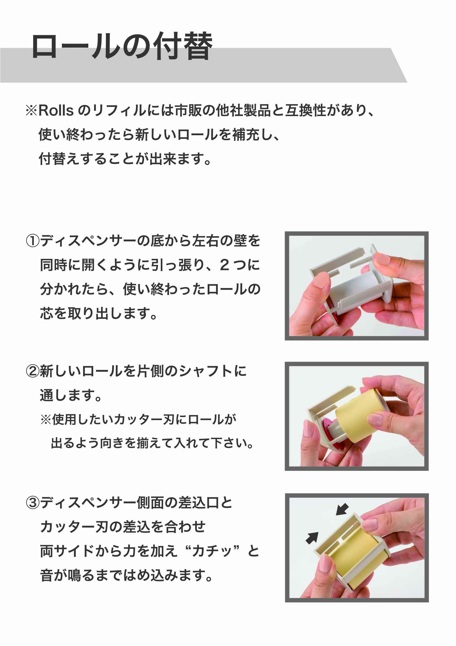 This product can also be used as a refill of a commercially available dispenser (for refilling) that can fit rolls of 50 mm width, in addition to our original roll clothes "Rolls 50".