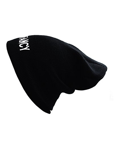 (NYFASHION101)/Accessories/Hats/DIRECT FROM USA/I'm So Fancy Patched Logo Unisex Black Slouch Warm Knit Ribbed Beanie Hat