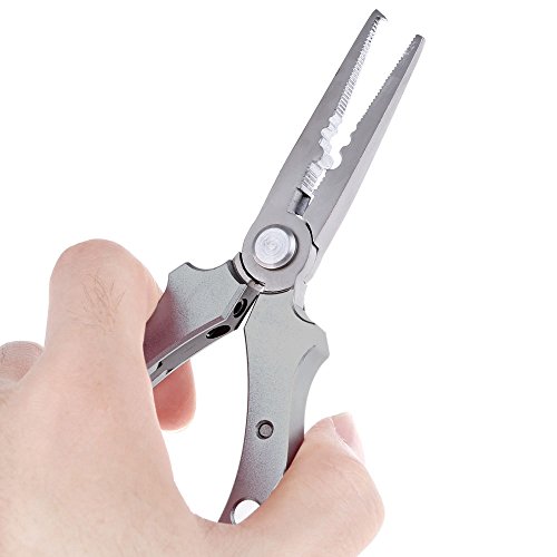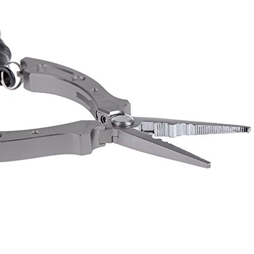 -. Feature : - Multifunctional, can be used to remove hook, cut off wire, take out steel hoop, etc. / - Aluminium alloy and stainless steel material, light, durable and corrosion resistant / - Sharp and pointed, can cut any kind of fishing string / - Ergonomic handle design, comfortable to use