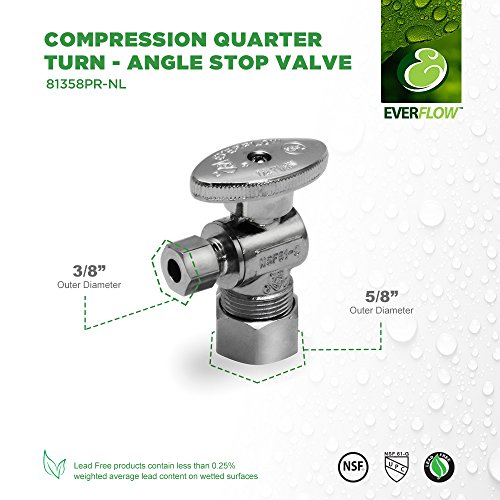 Everflow 81358PR-NL Quarter Turn Angel Water Stop Valve, Chrome-Plated Brass Body and Tube, 5/8 Inch Compression x 3/8 Inch Outer Diameter Compression Fitting, Metal Handle, Premium Lead free