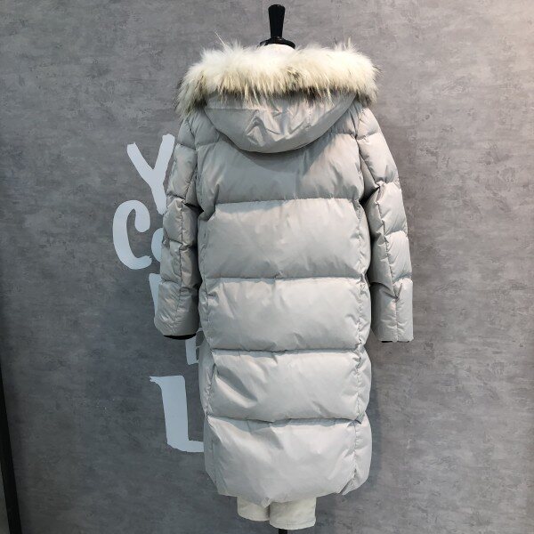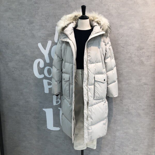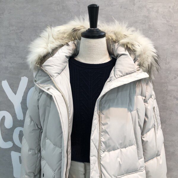 탈부착이 가능한 라쿤퍼 트리밍 후드 디테일의 캐주얼한 덕다운 점퍼입니다