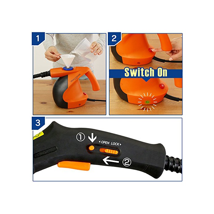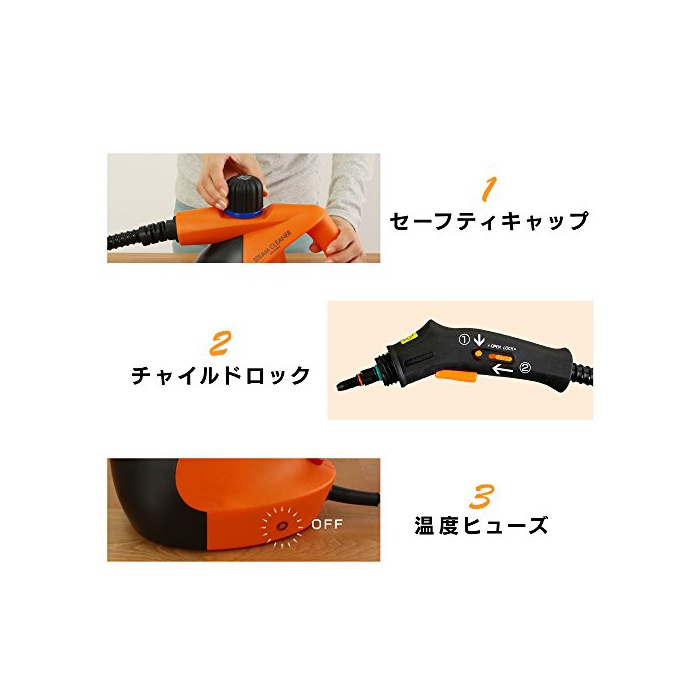 최대 분사 압력:약3기압 ●분사 대기 시간:약5분 ●연속 사용 시간:약12분 ●steam 온도:약100도 ●탱크 용량:약0.3L ●호스 길이:1.2m ●전원 코드 길이:2.0m