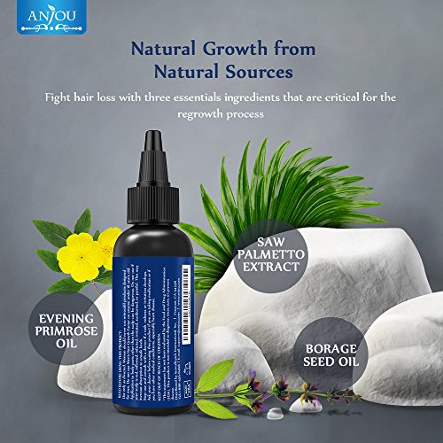 3 key ingredients for natural hair growth: Contains saw palmetto extract to inhibit DHT, and evening primrose and borage seed oils to minimize scalp and skin problems