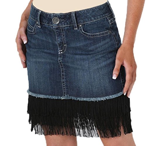 Wrangler juniors premium patch mae denim black fringe skirt