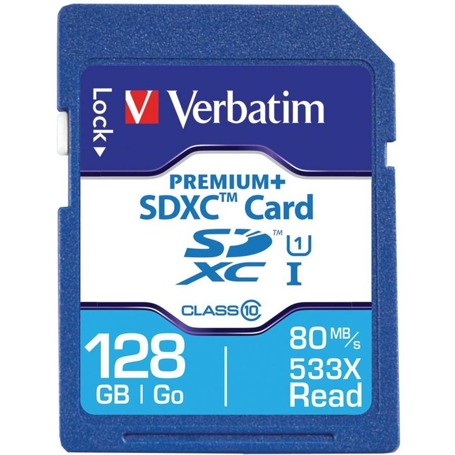 With the Verbatim 98729 PremiumPlus 533x SDXC Memory Card, you can be confident about capturing important moments. Use your digital single-lens reflex camera to snap burst-mode photos without a trace of motion blur. Record smooth, full 1080p HD video in a variety of settings thanks to a UHS-1 interface and U1 speed rating, which allow for more real-time data capture. The Verbatim memory card has a large storage capacity, and 80 Mbps read speeds create seamless playback and swift file transfers so you can get away from the computer and back to taking pictures and video. This item also holds up in many extreme environments thanks to its durable design. It is resistant to damage from water, the shock of impacts and high or low temperatures. The 128GB memory card can hold hours of HD video or thousands of high-resolution pictures, so you can keep lots of media in long-term storage. Verbatim 98729 PremiumPlus 533x SDXC Memory Card, 128GB: