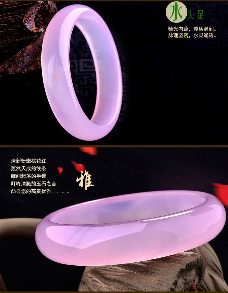 石仙天然粉色玉镯芙蓉玉手水晶玛瑙女手镯冰花