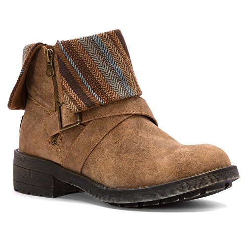 Rocket Dog Women's Tobie Suspect PU Tweedy Pie Motorcycle Boot Brown 8.5