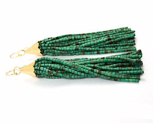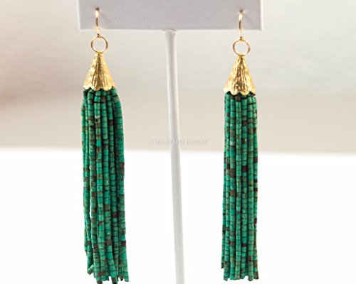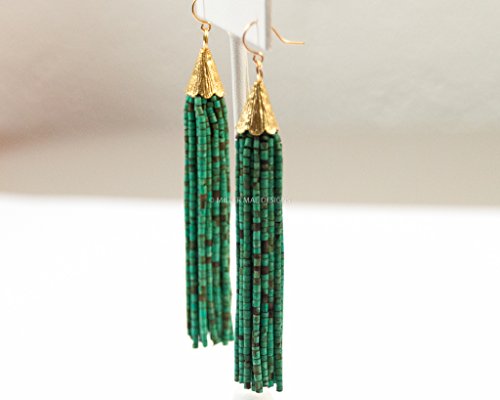 -. Title : Bottle Green Marble Beaded Tassel Earrings | Fringe Drop Earrings