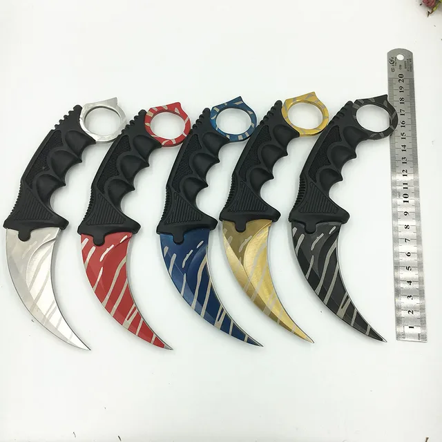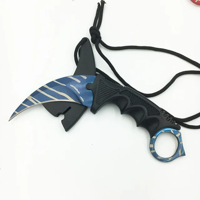 | [해외] CS 이동 카운터 스트라이크 발톱 Karambit 나이프 선명 목 칼집 골드 호랑이 치아 진짜 게임 칼 캠핑 |