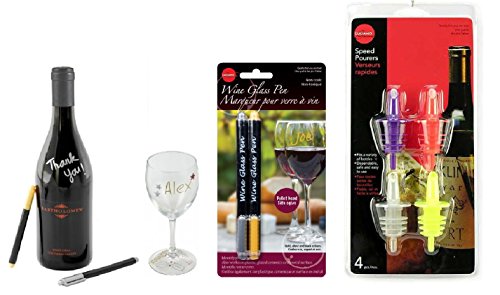 -. Brand : db Products -. Color : Gold, Silver, Black -. EAN : 0702865949929 -. Feature : 2pk Gold & Silver Non Toxic Wine Glass Marker Pens and 4 Speed Pourers / Identify your glasses during this Christmas Holiday Season / Also works on plastic, glazed ceramics and metal surfaces / Forget wine charms! Add a personal touch on wine glasses or tumblers / Quality that you can trust -. PackageQuantity : 3 -. ProductGroup : Kitchen -. ProductTypeName : KITCHEN -. Title : Wine Glass Marker Non-Toxic Metallic Pens with Speed Pourers - Pack of 2 Pens and 4 Speed Wine Pourers -. UPC : 702865949929