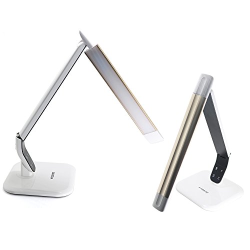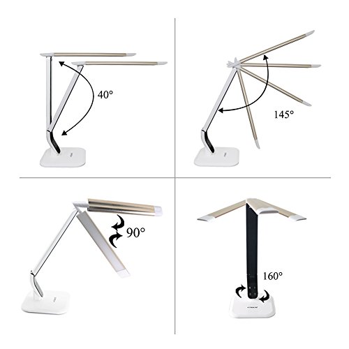 -. Feature : TOUCH SENSITIVE CONTROL. 3 Lighting Modes, Dimmable with 5 levels of brightness ,Easy to Operate (Studying/ Reading /Relaxation/Bedtime) / FLEXIBLE DESIGN. Elegant foldable design,You can adjust chimney angle as you want to get the best angle for your need, allowing you to focus light as you want / EYE-PROTECTION. 5880k-3160k-4200k 3 Color temperatures are designed to protect your eyes from shining. Flicker-free natural light, ease for eye. No UV, No radiation. / ENERGY-SAVING & LONG LIFESPAN. Consume 90% less energy than a typical incandescent light for the same level of brightness. long lifespan up to 35,000hrs / COMPACT DESIGN WITH Utility LOOK, Ideal for your Home,office, living room,Bedroom easily. Made of top-grade ABS and Aluminum alloy material lilght Case and EVA at the bottom of base, it will keep stable in your place.