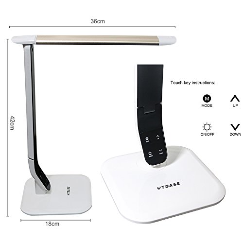 -. Title : LED Desk Lamp, YTBASE Aluminum Alloy Table Lamp for Office Home Dorm 5 Dimmable Levels Energy Efficient Eye-caring Touch Control 10W Desk light with 12V/1A USB Charging Port-Gold