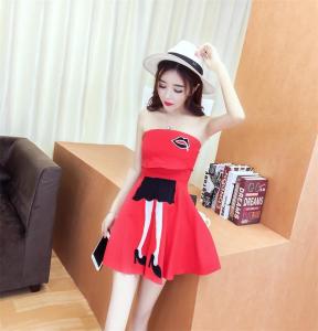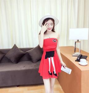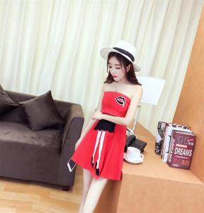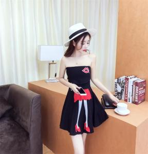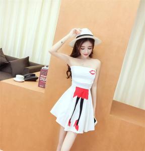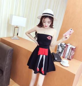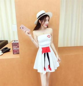 ベアワンピース ミニ丈ワンピース ハイウエスト フレアスカート ポップ セクシー 大人 プチプラ リップ柄