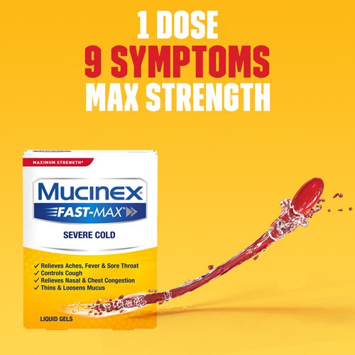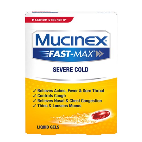 ReleaseDate : 2017-09-01 Studio : Reckitt Benckiser Publisher : Reckitt Benckiser Binding : Health and Beauty Product Description Sometimes, when you’re sick, you’re really sick. Sore throat, stuffy nose, fever, headache, cough - you name it, you've got it. Maximum Strength Mucinex?Fast-Max Severe Cold has your back. Just one dose relieves 9 symptoms so you can get on with your day. 0