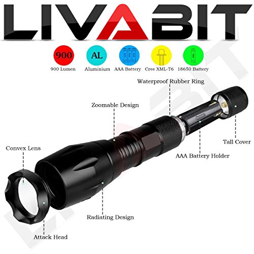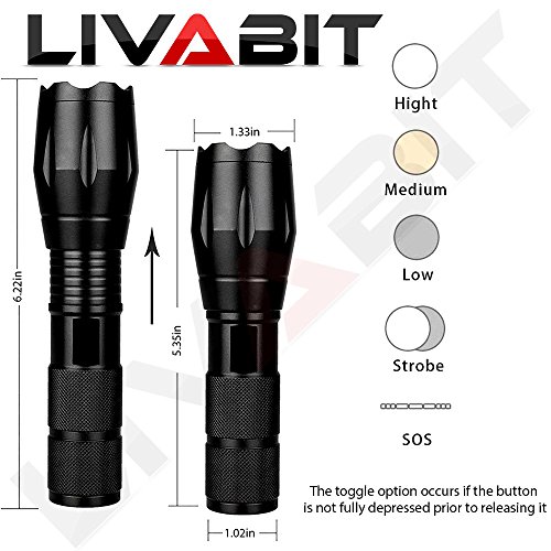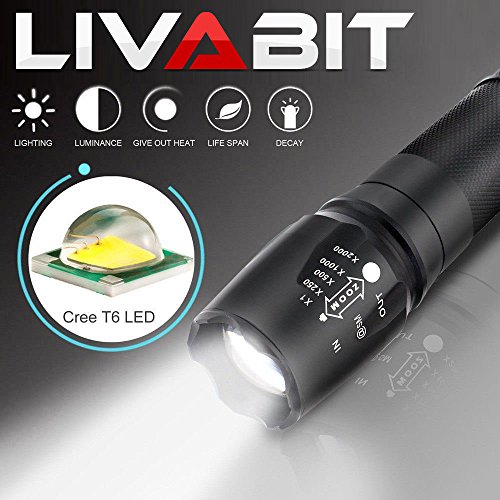 LIVABIT Tactical T1K Super Bright Rechargeable LED Flash Light Kit 1000LM Flashlight Torch