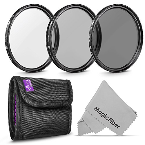 Kit includes: Altura Photo Professional Photography Filter Kit (UV, CPL Polarizer, Neutral Density ND4) for Camera Lens + Filter Pouch + MagicFiber Microfiber Lens Cleaning Cloth