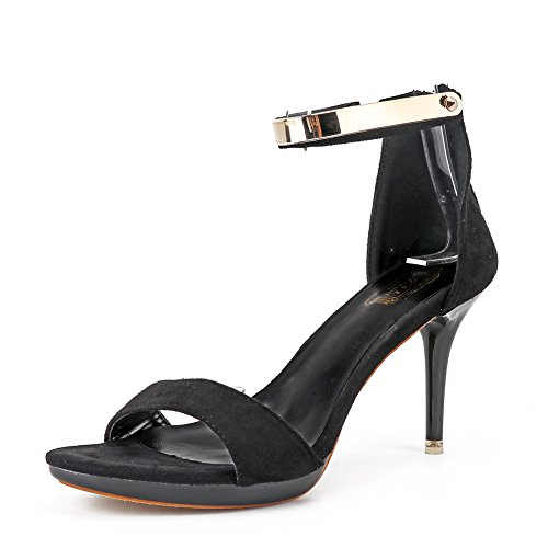 Binding : Apparel Product Description Features: Brand: Meeshine Heel Height: 3.8" (Approx), Platform Height: 0.38" (Approx) Style: Sexy,Dress,Fashion,Casual Heel Type: High Heel Material: Faux Suede Toe Style: Open Toe Width: Medium (B, M) The sandals featuring a slim strap that hugs your ankle for custom support and provides a comfort throughout wear. Heeled Sandals do not have to feature thick, heavy soles to be comfortable or safe to wear! Perfect for work, play and special occasions, the High Heel Sandals with Ankle Straps mix and match with all kinds of summer dresses, skirts, capris and shorts.
