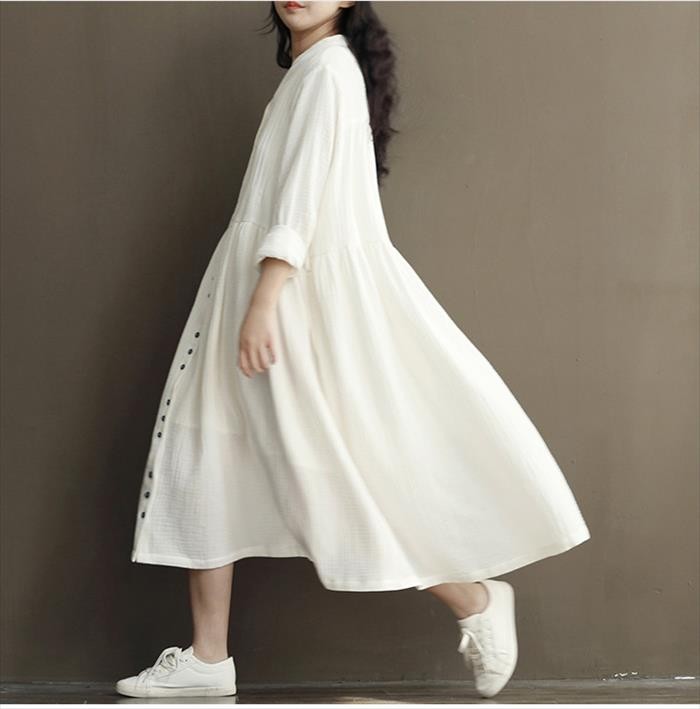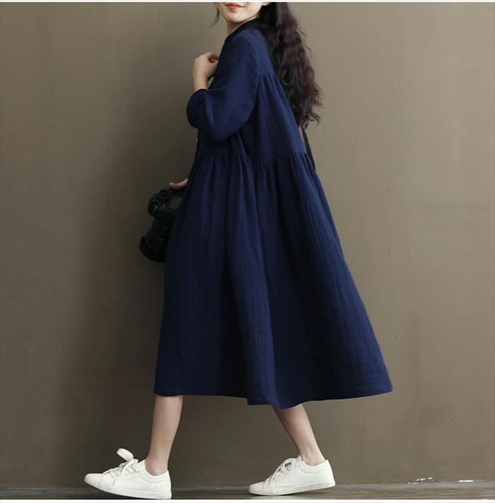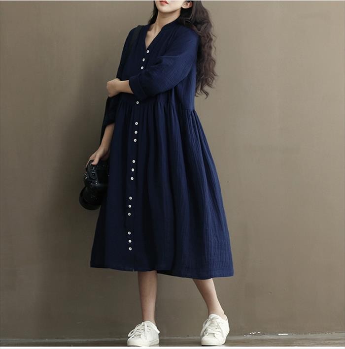 ●商品の特徴・ゆったりAラインシルエットのVネックフレアシャツワンピース。・表面にはシボのある、ふんわり柔らかなコットン生地を使用しており、着心地はとっても楽チン♪・裾に向かって広がったゆったりAラインシルエットなので、気になる体型もバッチリカバー♪・前見頃は多ボタン仕様になっており、シンプルな中にも程良いアクセントに。●サイズ展開 【M】着丈95cm バスト122cm 肩幅40cm 袖丈54cm 【L】 着丈96cm バスト126cm 肩幅41cm 袖丈55cm※平均での採寸となりますので、多少の誤差が生じる場合がございます。ご了承くださいませ。●カラー展開 ホワイト ネイビー ※画像をご参照下さい。●商品詳細 【素材】:コットン100% 【厚み】:普通 【裏地】:なし 【シルエット】:ゆったり 【伸縮性】:なし 【付属品】:なし 20代 30代 40代 50代 レディースファッション 人気 激安 安い