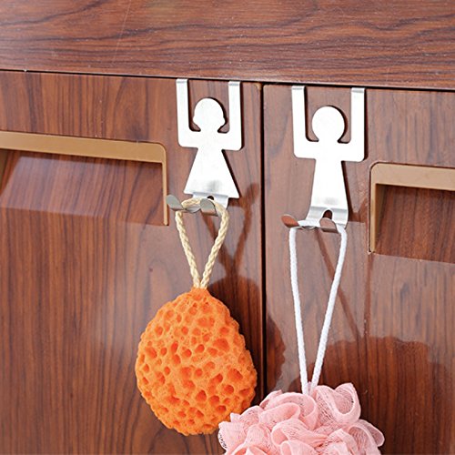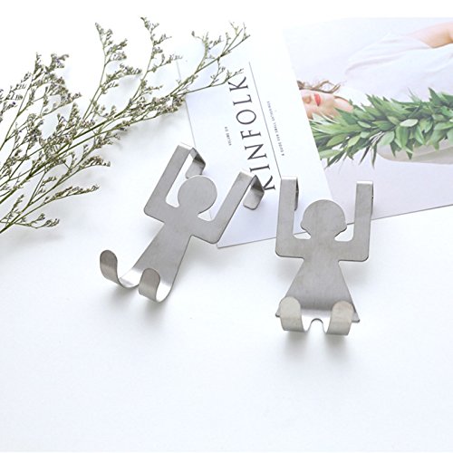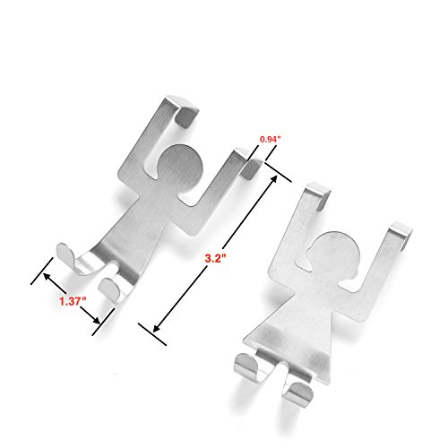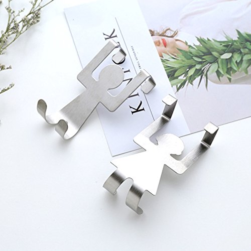 Over Cabinet Door Double Hooks, Stainless Steel Clothes Coat Hat Towel Holder Rack Hanger for Office Bathroom Kitchen (Cute Human, Set of 2)