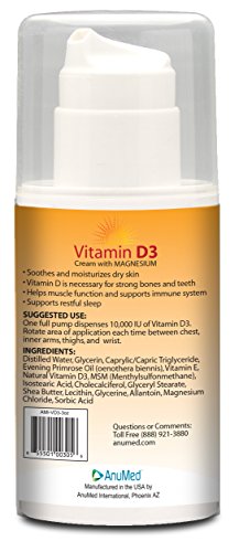 AnuMed Vitamin D3 Cream 10,000 IU 3 Ounces