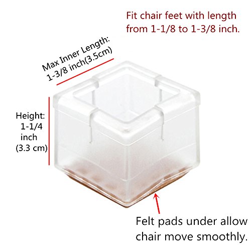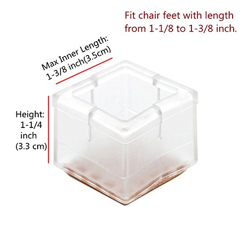 - Feature : Fit chair feet with length from 1-1/8 inch to 1-3/8 inch (3-3.5cm). / Improved design: the felt pads allow your chair to glide smoothly along the tile/wood floor. / The silicon gel box grips the chair feet securely. / They eliminate the need to use those little sticky pads. / Both material are durable and sturdy.