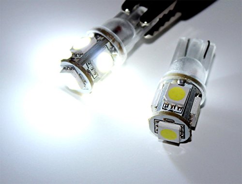 This type of 5-SMD T10 LED bulbs will replace stock bulb sizes: 158 168 175 194 2825 2827 W5W 912 921 for vehicles such as Acura Honda Audi BMW Mercedes Lexus Scion Toyota Nissan Infiniti Mazda Subaru Mitsubishi for a varieties of places such as parking lights, license plate lights, side marker lights, interior map/dome lights, trunk area lights, and more.
