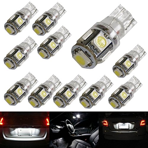 iJDMTOY ® (10) 5-SMD-5050 168 194 2825 W5W LED Replacement Bulbs For Car Interior Map/Dome Lights, License Plate Lights, Parking Lights, Xenon White