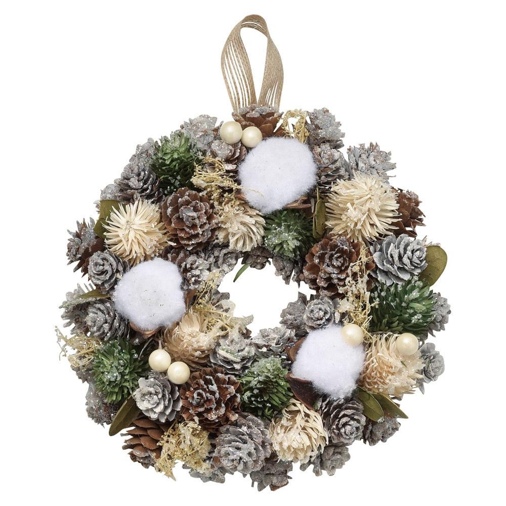 まるで雪が積もっているような幻想的なリース。