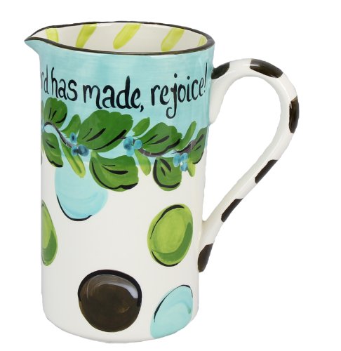 Young's Ceramic Water Pitcher, 8-Inch, Blue Dots