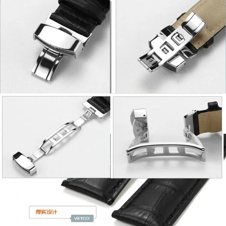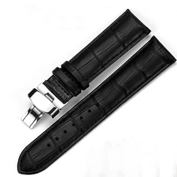 내구성 스트랩 남성 정품 가죽 시계 스트랩 18 미리메터 20 미리메터 22 미리메터 24 미리메터 소 시계 밴드 스테인레스 스틸 푸시 버튼 숨겨진 걸쇠