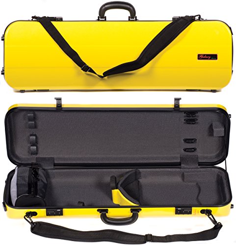 -. Feature : For 4/4 Violin / Beautiful Yellow Finish - 4-Layer Shell - ABS and Polyurethane Exterior Construction - Weather Resistant Seal / Polystyrene and Polyurethane Interior Construction - Plush Polyester Interior - Instrument Suspension / Small Accessory Pouch - 4 Bow Holders - Velcro Neck Restraint - Tail Block Sponge - 2 Neoprene Shoulder Straps - D-Rings for Backpack Carrying Option / Extremely Light Weight: 4lbs (1.8 kg)