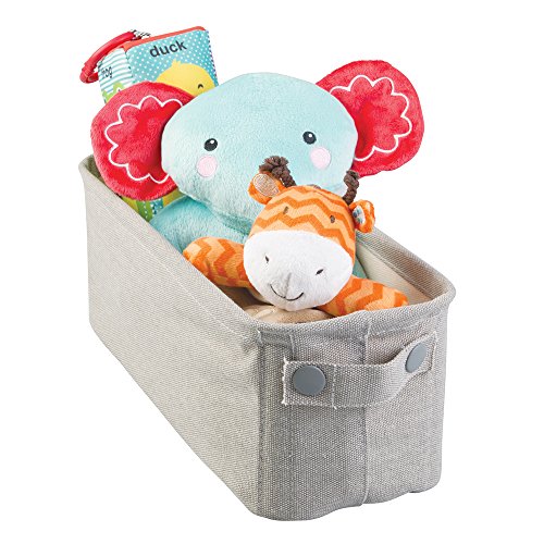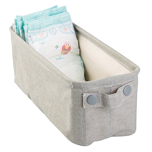 mDesign Baby Nursery Cotton Fabric Storage Bin for Diapers, Wipes, Stuffed Animals, Toys - Small, Light Gray