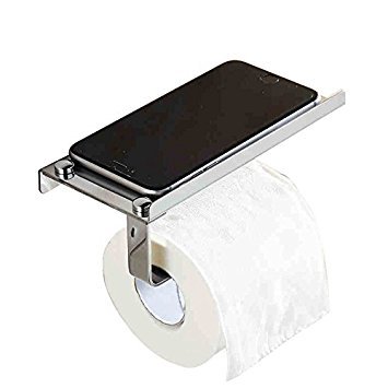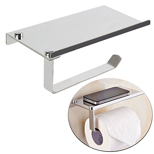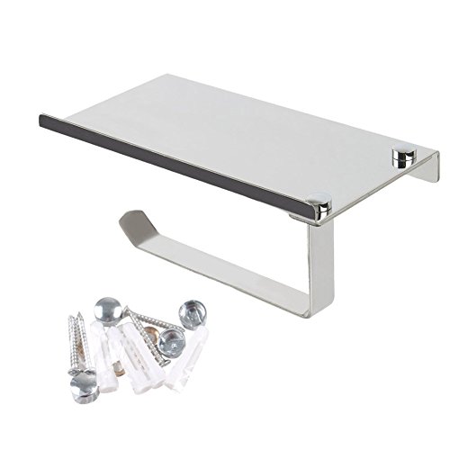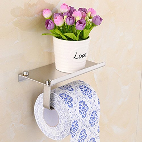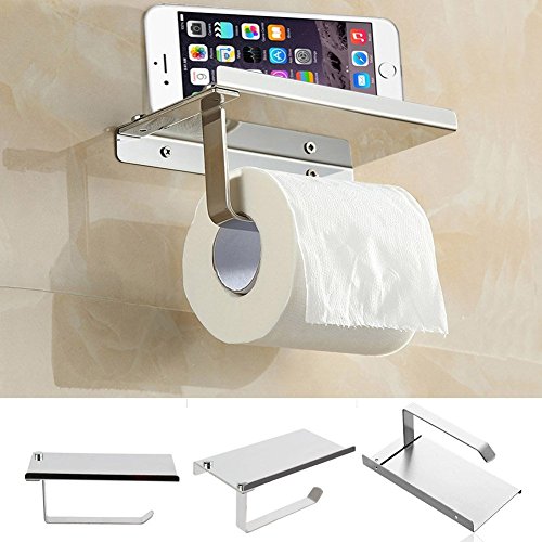 Toilet Paper Holder, SUNNIOR Creative Mobile Phone Roll Paper Support Thickened brushed Stainless Steel Bathroom Wall - Mounted Bracket.