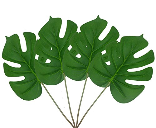 Warmter Artificial Tropical Green Plant Fake Leaves Safari Party Supplies Arrangement Kitchen Outdoor Garden Wedding Festival Costume Décor 4PCS